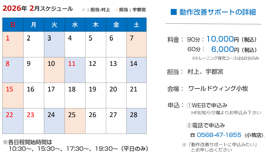会員様向けトップトレーナーの各サポートの2月の開催日程を共有させていただきます。(休会中の方はご利用いただけませんので予めご了承ください。)