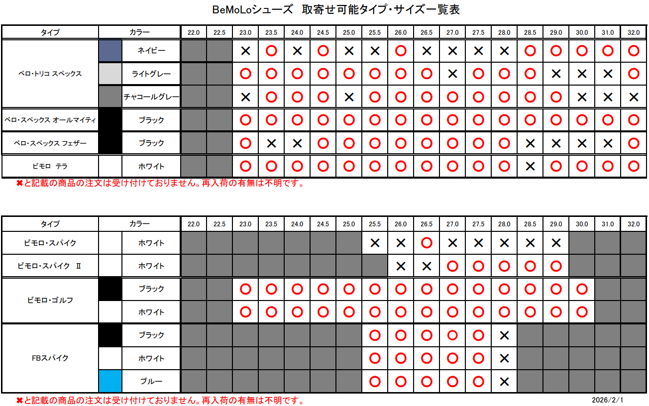 ビモロシューズの在庫状況を共有させていただきます。